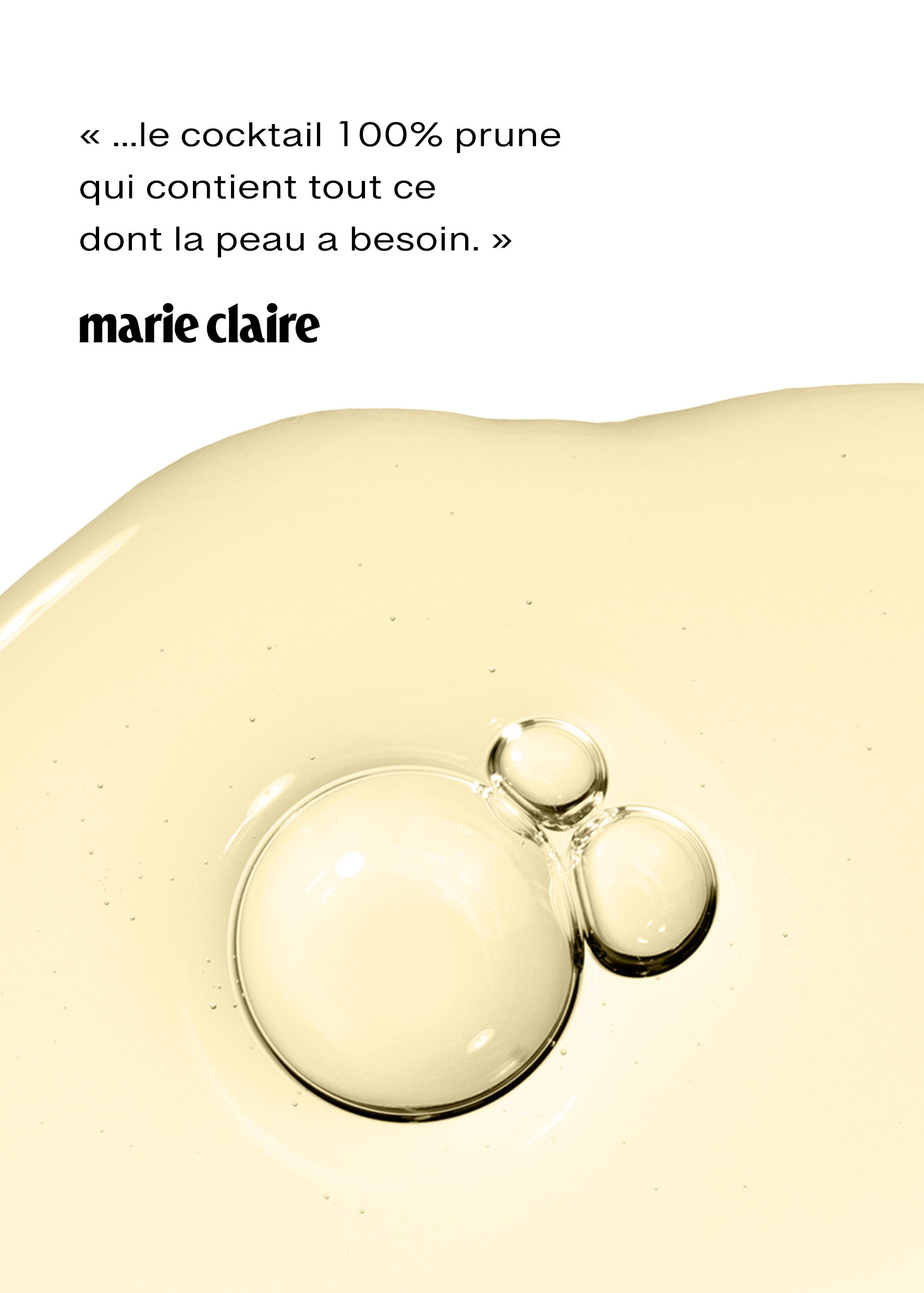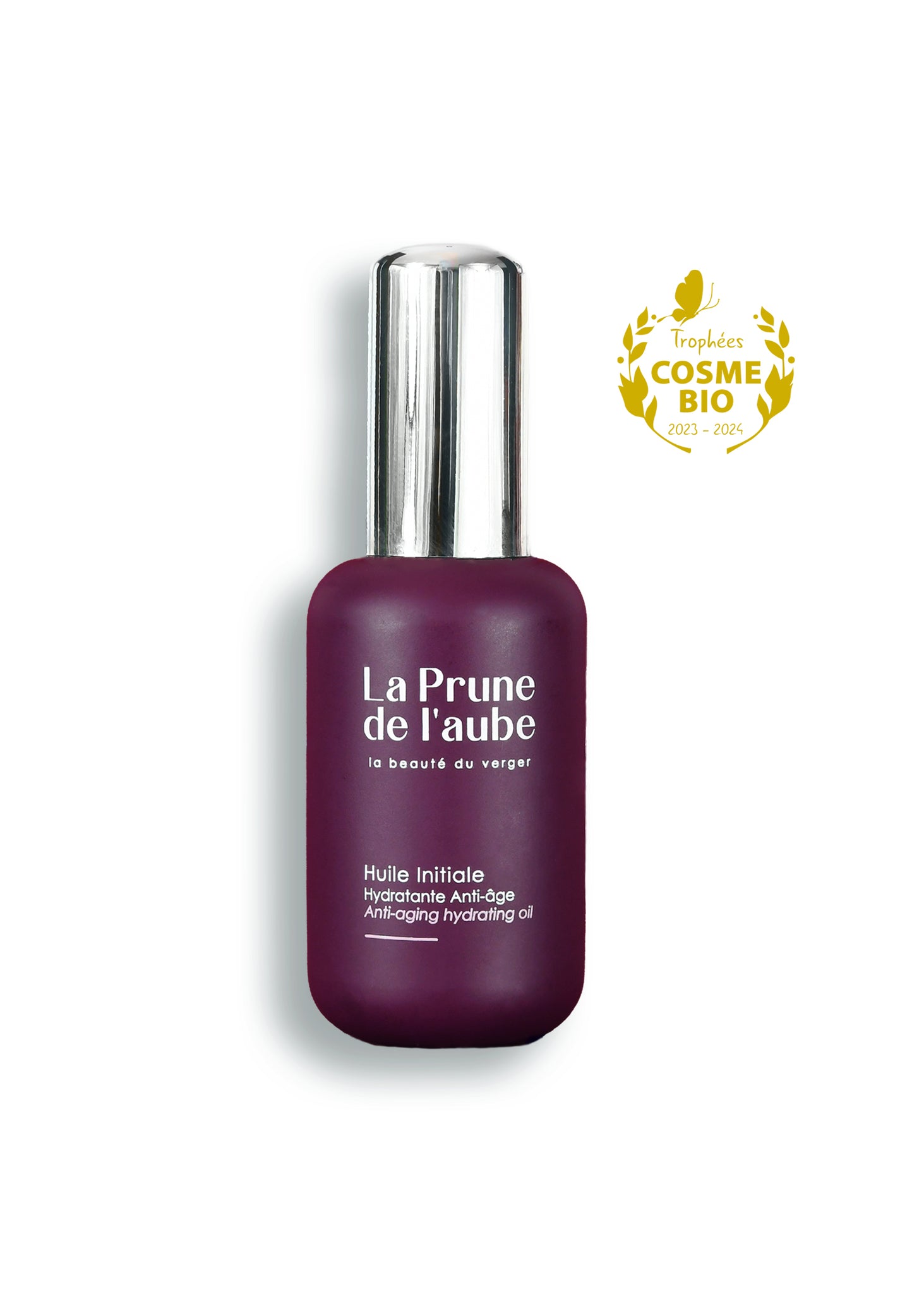 - Huile de prune d’Aquitaine — riche en vitamine E (antioxydant), aide à protéger du stress oxydatif, et restaure le film hydrolipidique.