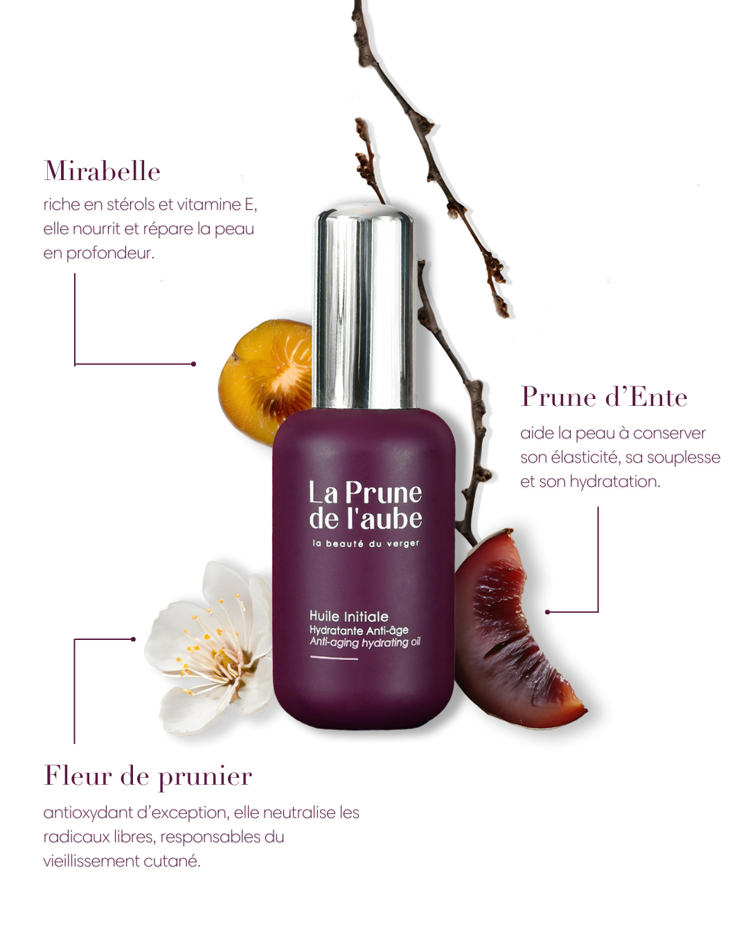 - Huile de mirabelle de Lorraine — nourrit intensément et améliore la souplesse cutanée.